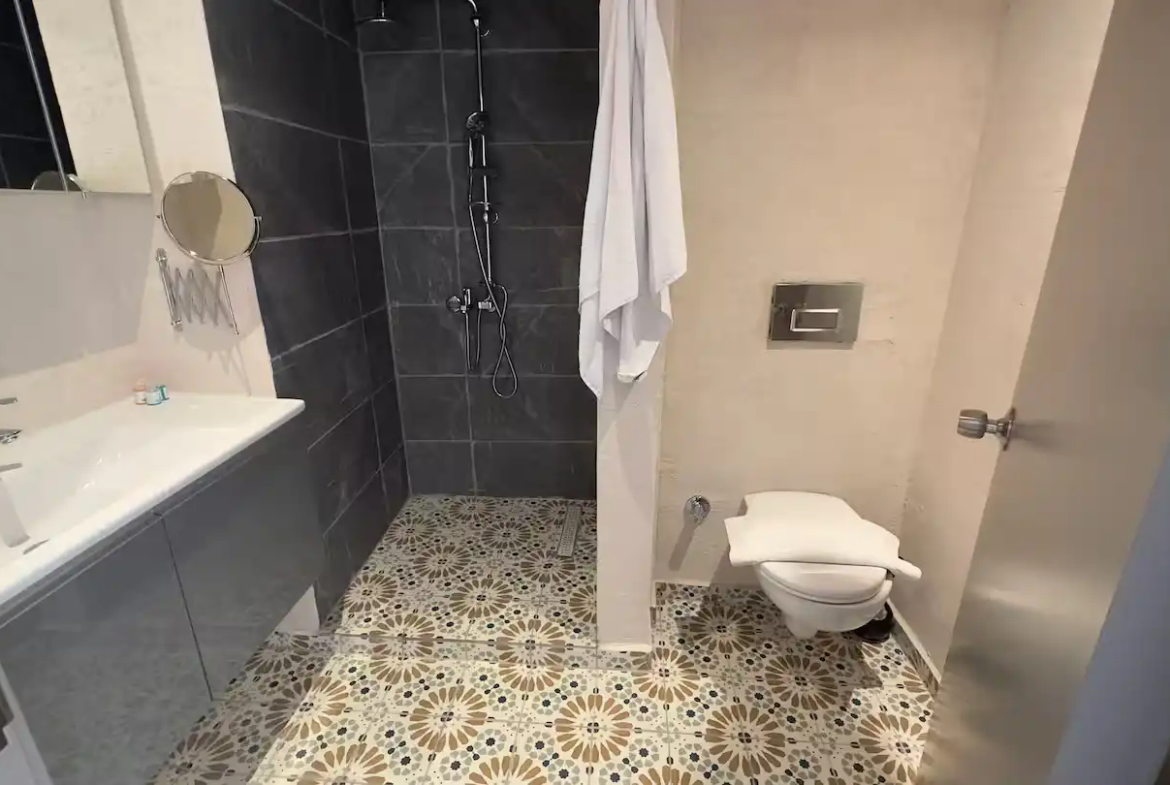 - دو اتاق خواب و دو حمام کامل: این آپارتمان با داشتن دو اتاق خواب مجزا و دو حمام کامل، فضایی بسیار راحت و خصوصی برای اقامت تا ۶ نفر (با استفاده از فضای نشیمن) فراهم میکند. این ویژگی برای خانوادههای بزرگتر، دو زوج یا گروههای دوستانه ایدهآل است.
