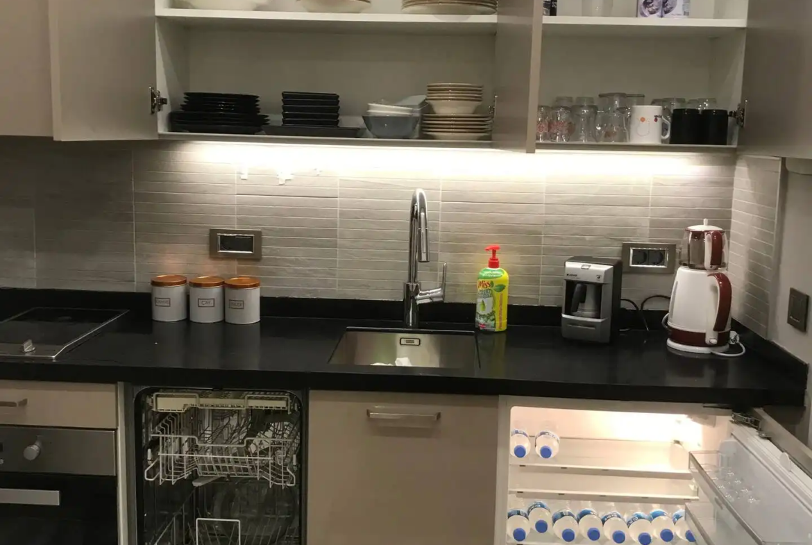 - آشپزخانه کامل: آشپزخانه مجهز به ماشین ظرفشویی، اجاق گاز، فر، یخچال، مخلوطکن و تمام وسایل لازم برای یک آشپزی کامل و حرفهای است.