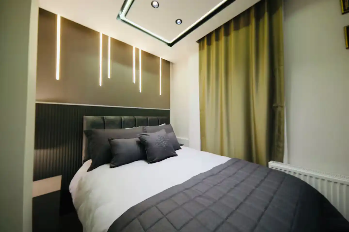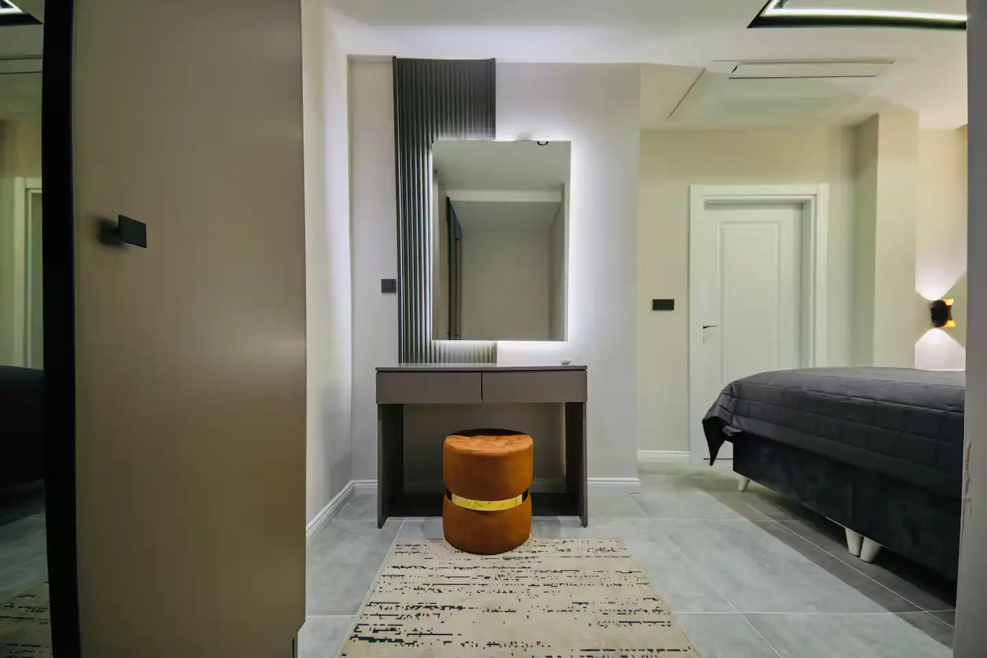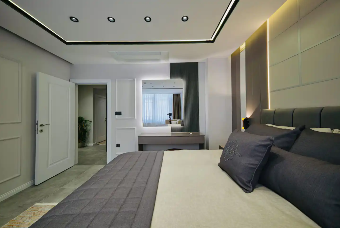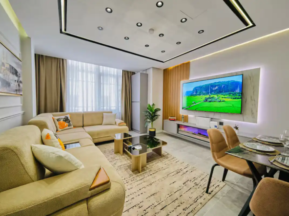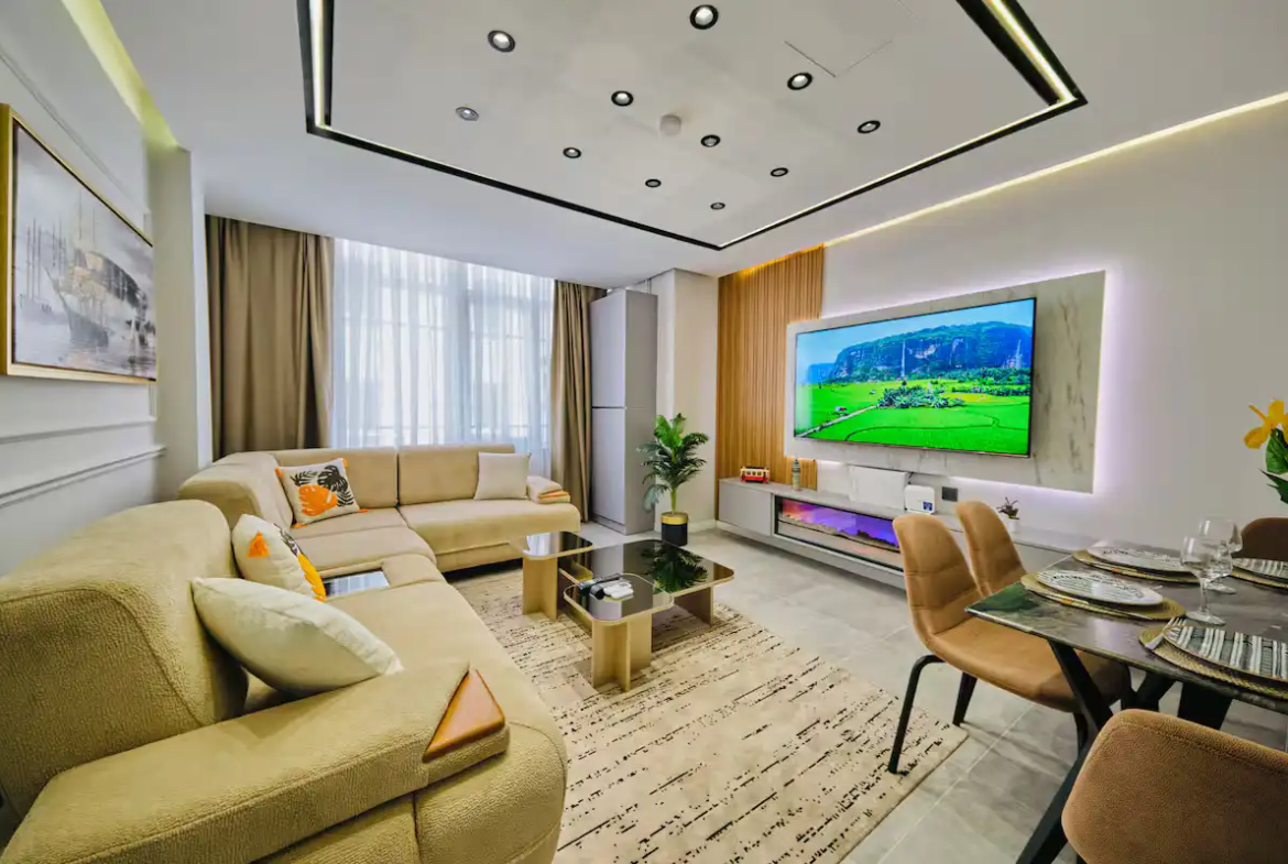 این آپارتمان برای اجاره کوتاه مدت در تکسیم، یک واحد معمولی نیست. این خانه به طور کامل بازسازی شده و با طراحی داخلی مدرن و نورپردازیهای سقف خیرهکننده (همانطور که در تصاویر پیداست)، فضایی مجلل و آرامشبخش را ایجاد کرده است.