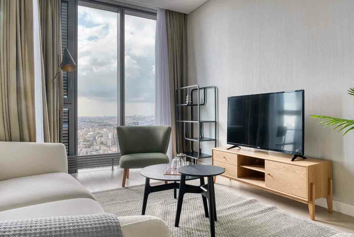 تکنولوژی و راحتی: آپارتمان مجهز به تلویزیون هوشمند (Smart TV) و اینترنت پرسرعت فیبر نوری (Wi-Fi) است.