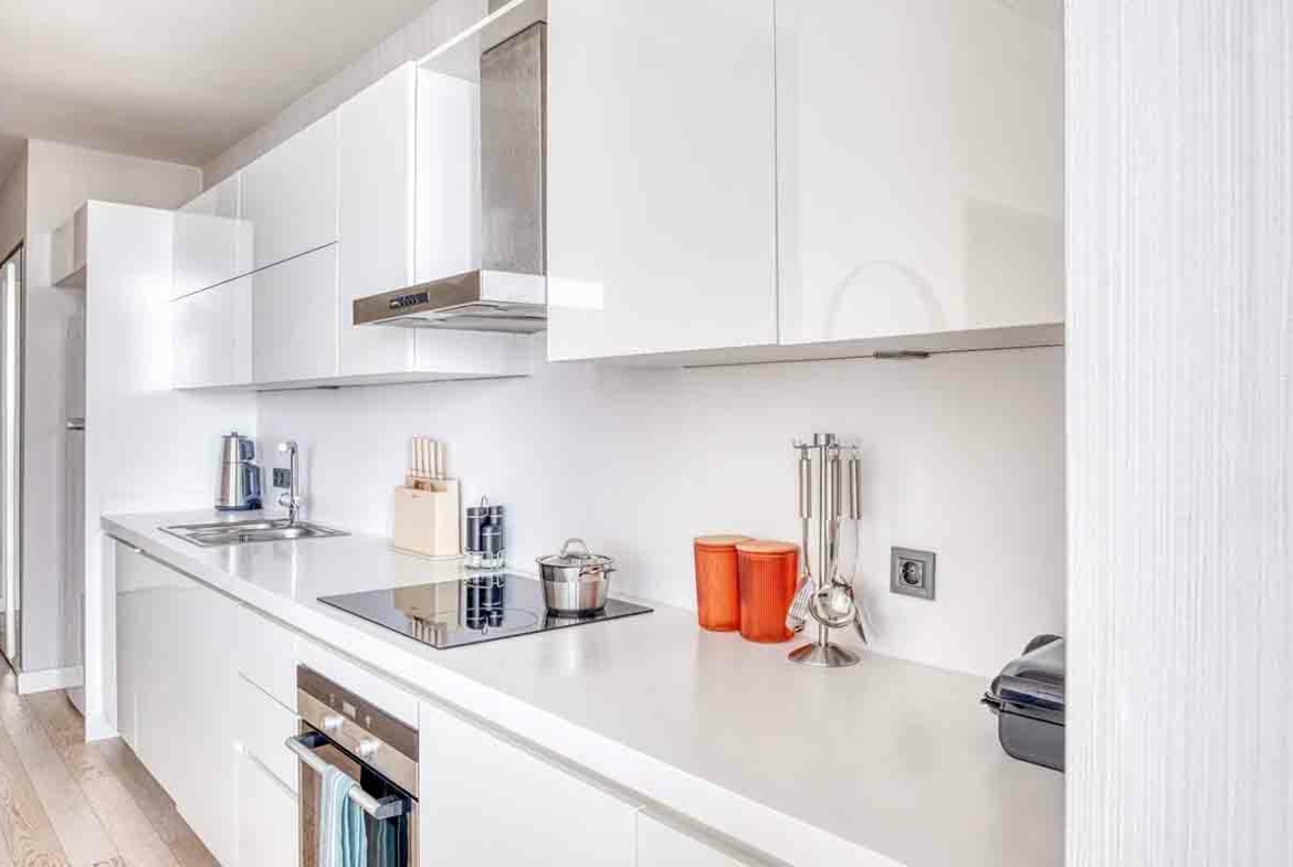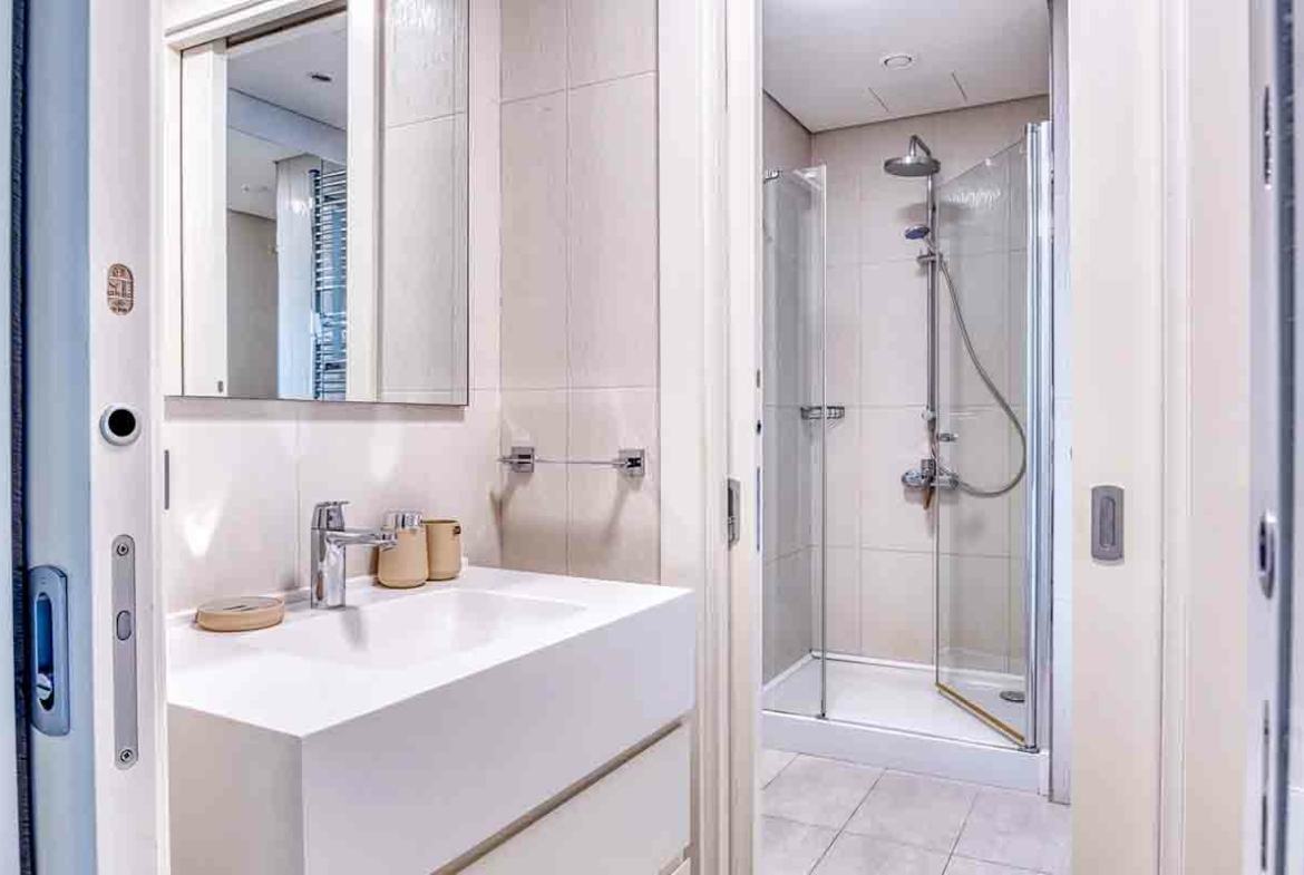 سالن پذیرایی و بالکن: سالن پذیرایی بسیار دلباز و پر از نور طبیعی است. دیزاین مدرن و مبلمان کاملاً نو، فضایی شیک و در عین حال گرم ایجاد کردهاند. این سالن به یک بالکن دلباز متصل است که فضایی عالی برای لذت بردن از این منظره استثنایی فراهم میکند.