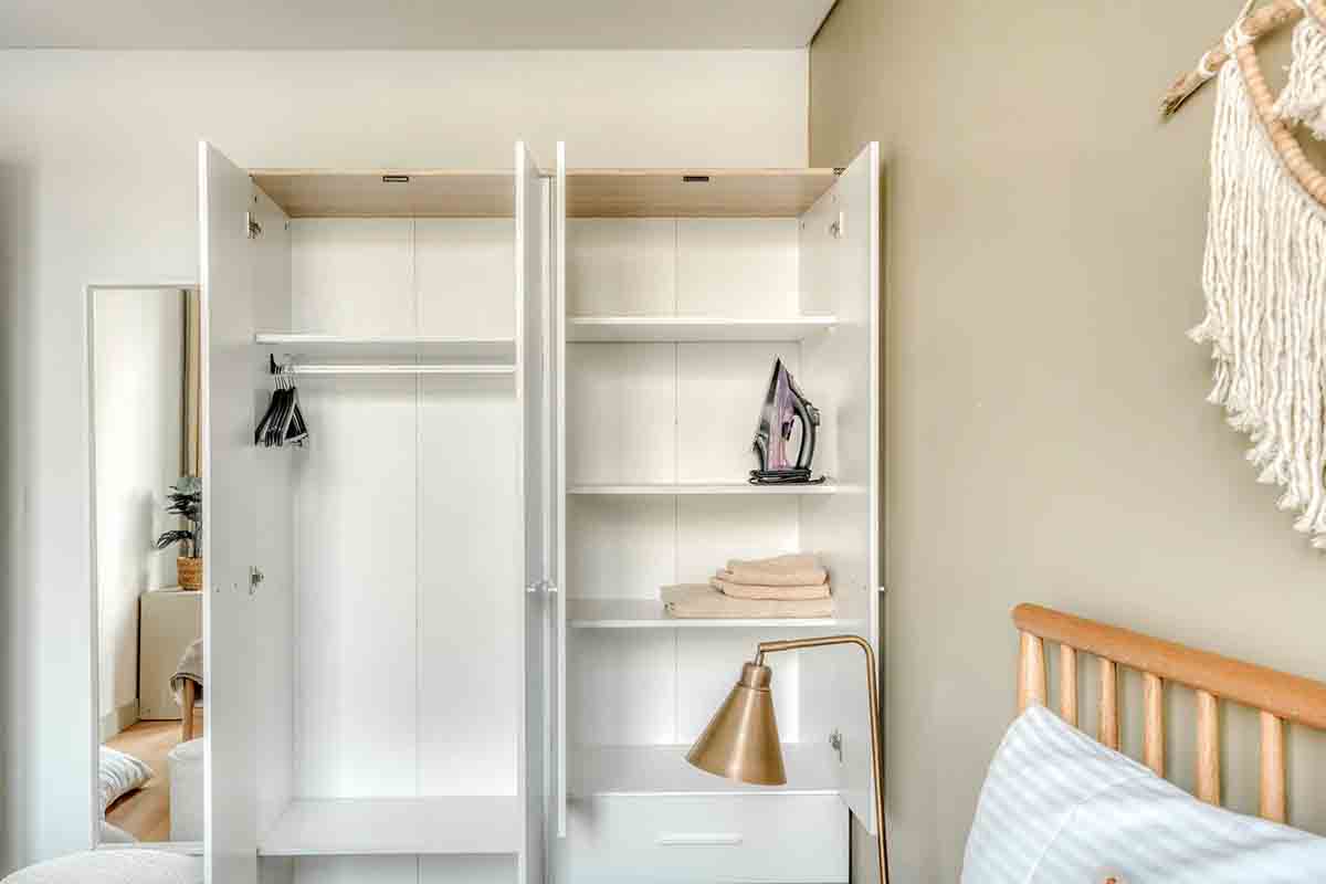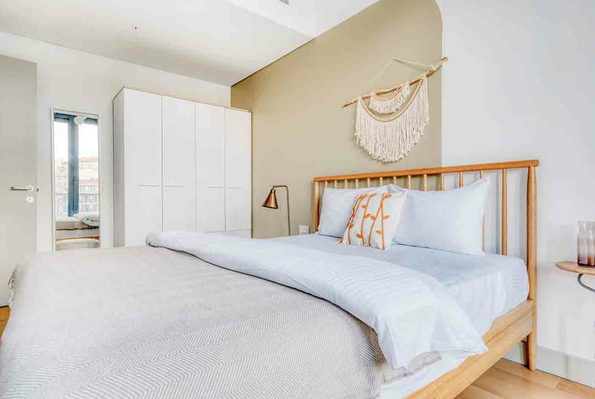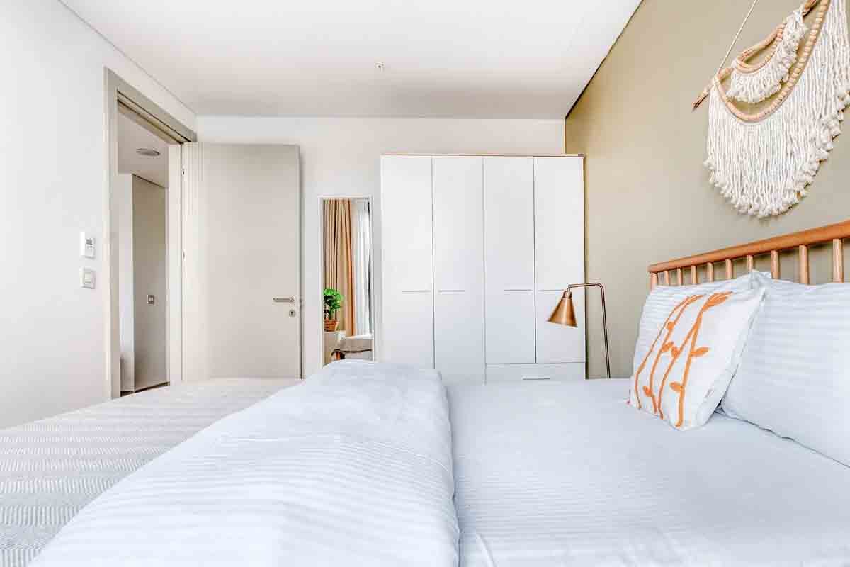 آشپزخانه مدرن و اتاق خواب: آشپزخانه به سبک آمریکایی (باز) طراحی شده و کاملاً مجهز به لوازم برقی نو است. اتاق خواب دلباز این واحد با تشک طبی باکیفیت و منسوجات خواب عالی تجهیز شده است.