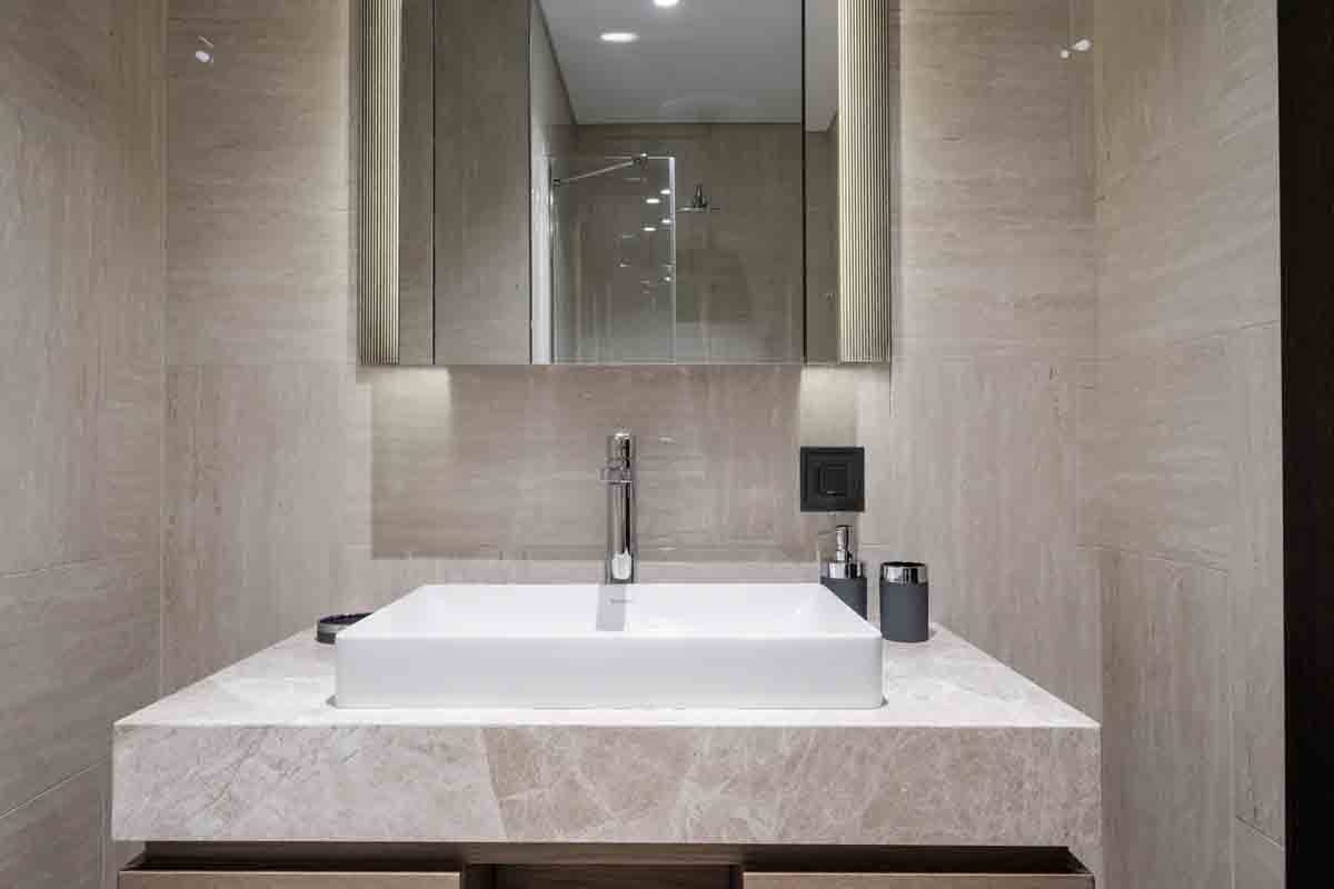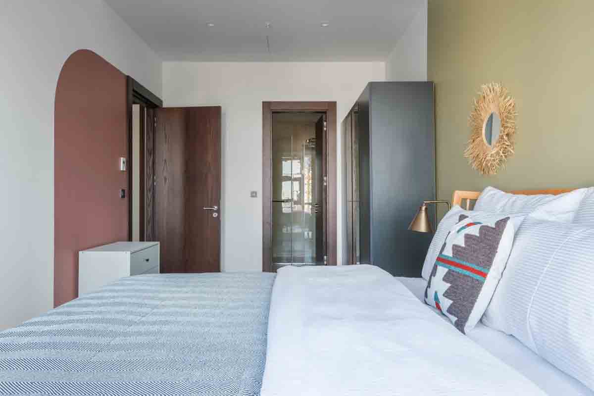 - آشپزخانه مدرن و اتاقها: آشپزخانه به سبک آمریکایی (باز) طراحی شده و کاملاً مجهز به لوازم برقی نو است. دو اتاق خواب دلباز این واحد با تشکهای طبی باکیفیت و منسوجات خواب عالی تجهیز شدهاند. مزیت بزرگ این واحد، داشتن دو حمام مجهز و مدرن است که راحتی کامل را برای یک خانواده تضمین میکند.