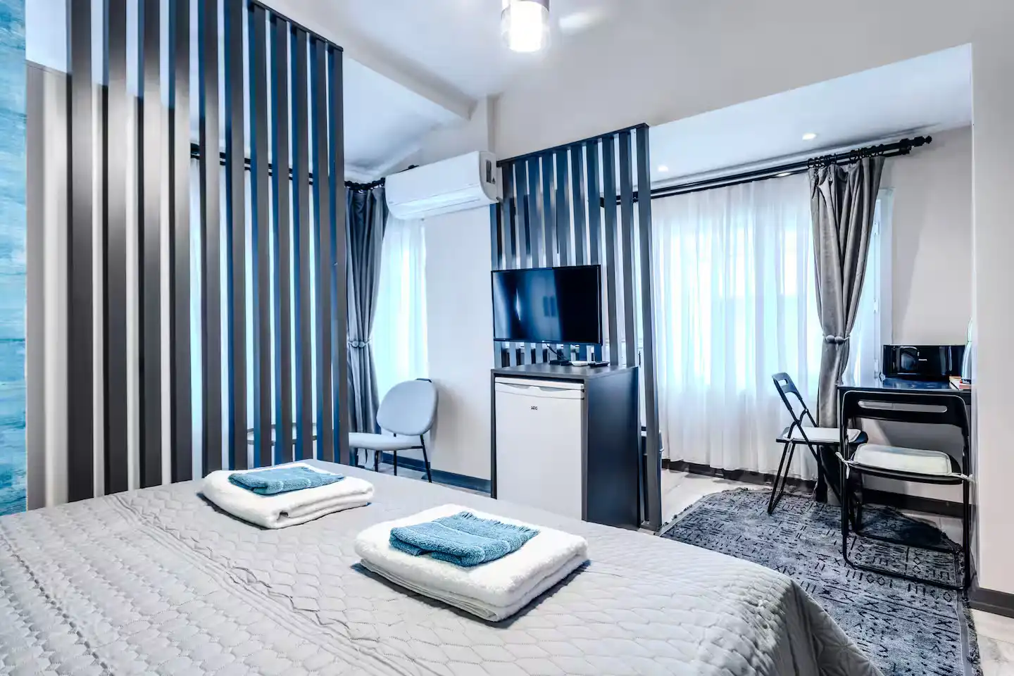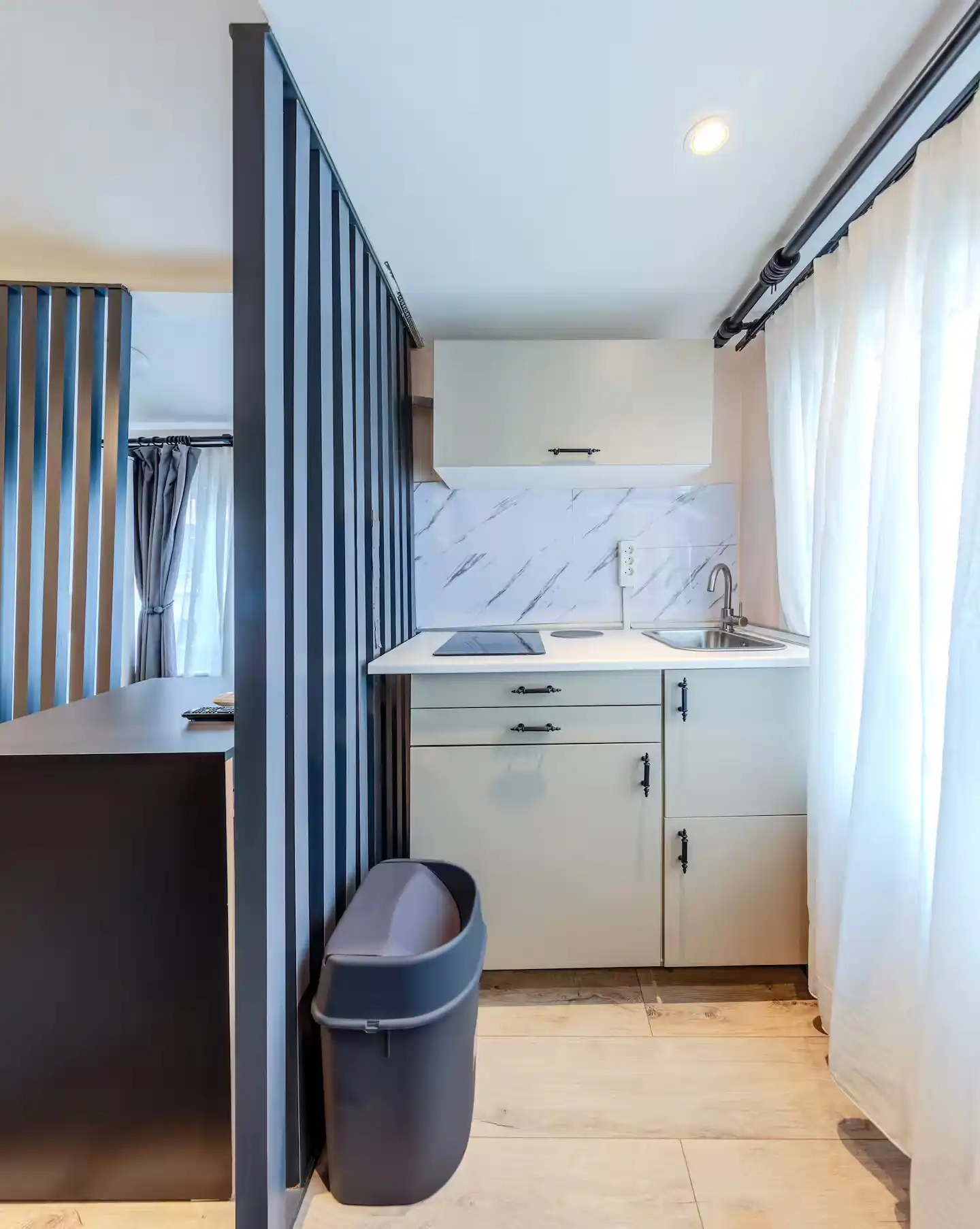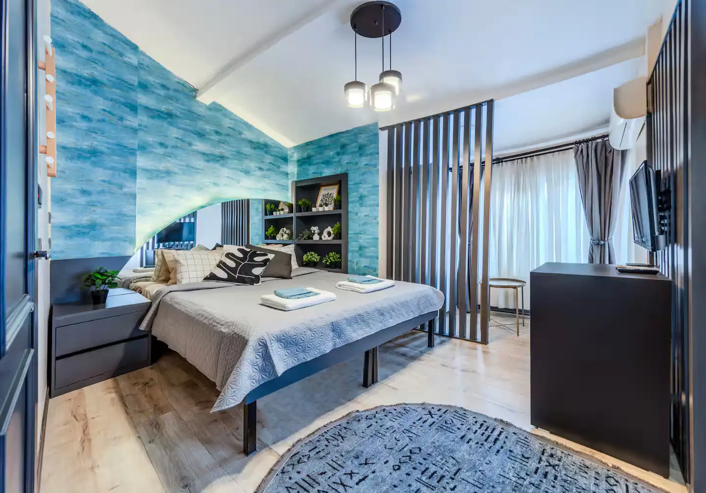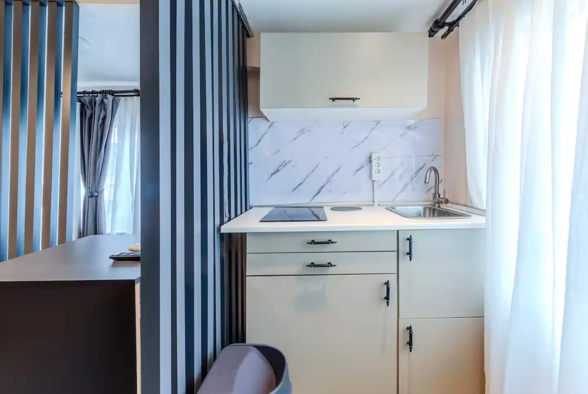 این آپارتمان یکخوابه با طراحی مدرن و دکوراسیون چشمنواز، فضایی دلباز، راحت و کاربردی را برای استراحت شما پس از یک روز گشتوگذار فراهم میکند.
