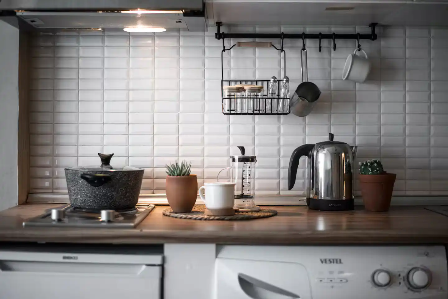- آشپزخانه کامل و مجهز: برخلاف بسیاری از سوئیتهای مرکز شهر، اینجا یک آشپزخانه کامل با اجاق گاز، فر، ماشین ظرفشویی و یخچال بزرگ در اختیار شماست. همچنین برای راحتی بیشتر، ماشین لباسشویی نیز در آشپزخانه تعبیه شده است.