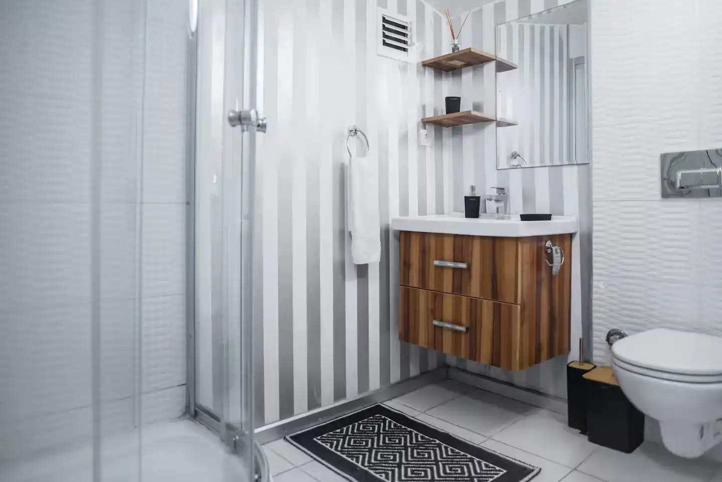 - حمام مدرن: حمام با دوش به سبک اتاقهای خیس (wet-room style)، تجربهای مدرن و راحت از استحمام را برای شما فراهم میکند.