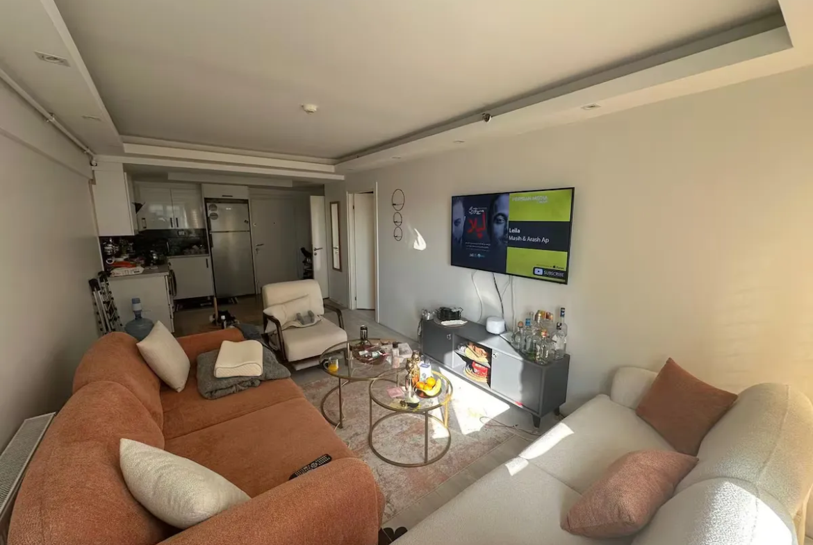 طراحی داخلی شیک و راحت: آپارتمان با مبلمان مدرن و راحت، از جمله یک کاناپه بزرگ و دنج، فضایی عالی برای استراحت و دورهمی ایجاد کرده است.