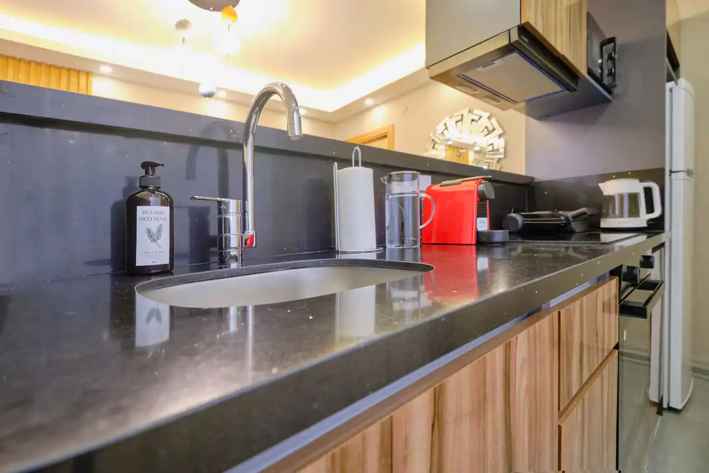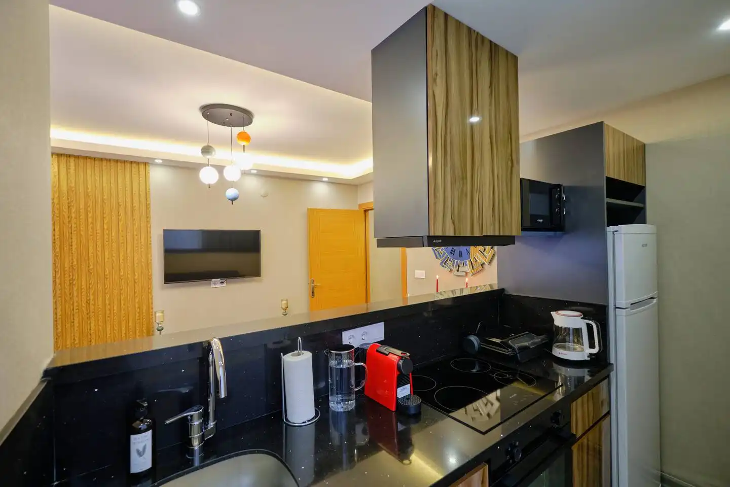 - آشپزخانه کامل و مدرن: یک آشپزخانه کاملاً مجهز با تمام وسایل لازم از جمله یخچال، اجاق گاز، مایکروویو و دستگاه اسپرسوساز برای شروع یک روز پرانرژی.