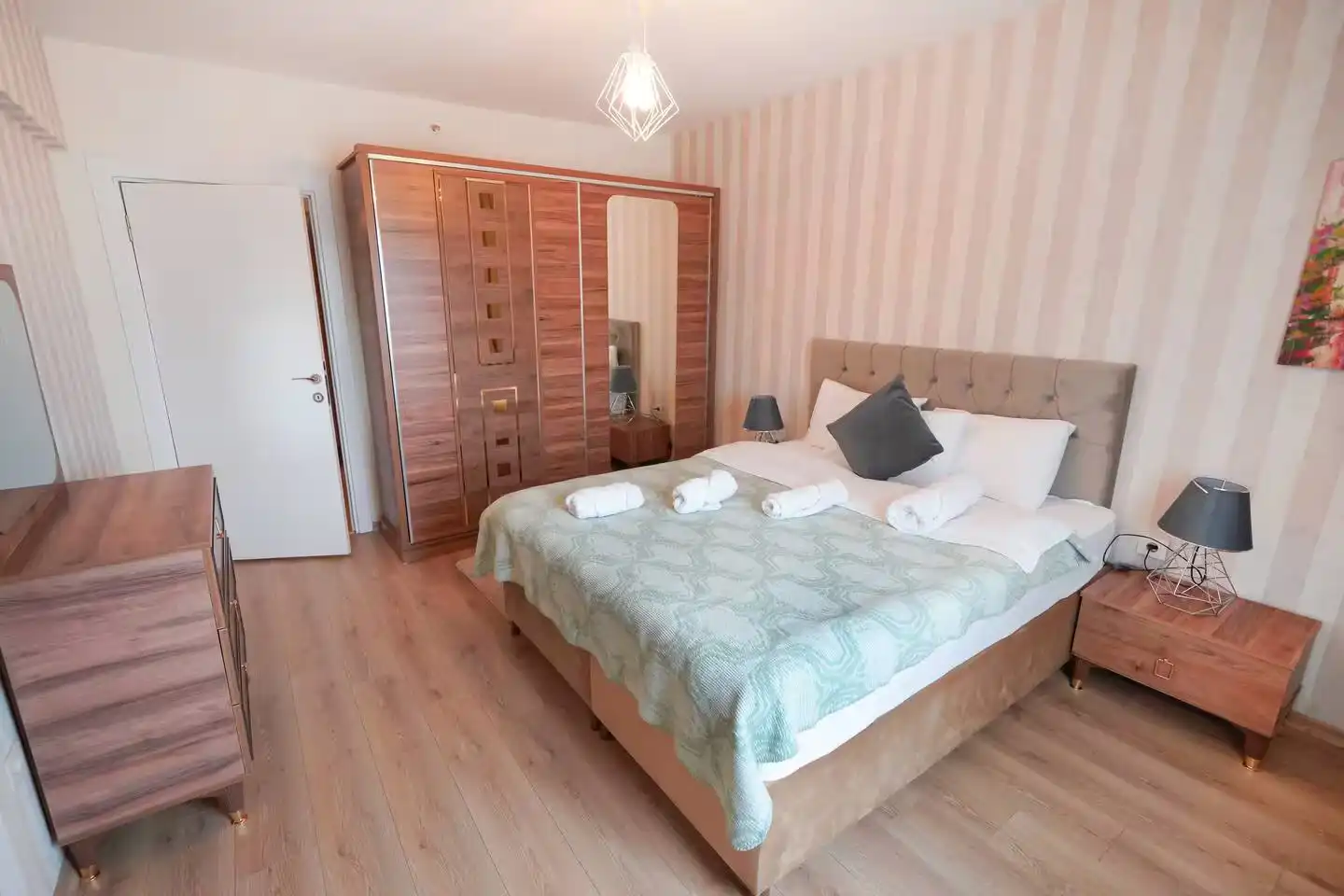 اجاره روزانه آپارتمان در اسنیورت | ۱ خوابه ۶۰ متری با پارکینگ رایگان اگر برای سفر به استانبول، چه برای کار، چه برای تفریح یا یک اقامت بلندمدت ، به دنبال اجاره روزانه آپارتمان در اسنیورت (Esenyurt) هستید، این واحد یکخوابه (۱+۱) شیک و مدرن، گزینهای بینقص برای شماست. این آپارتمان ۶۰ متری که در یک «رزیدانس» یا مجتمع مسکونی امن و نوساز قرار دارد، توسط تیم حرفهای «ترک گشت» مدیریت میشود. ما این واحد را با تمام امکانات رفاهی یک خانه کامل تجهیز کردهایم تا اقامتی بیدغدغه و راحت را برای شما فراهم کنیم. این ملک یکی از محبوبترین انتخابها در میان میهمانان است و همواره نظرات مثبتی برای نظافت، راحتی و تجربه عالی ورود (Check-in) دریافت کرده است.