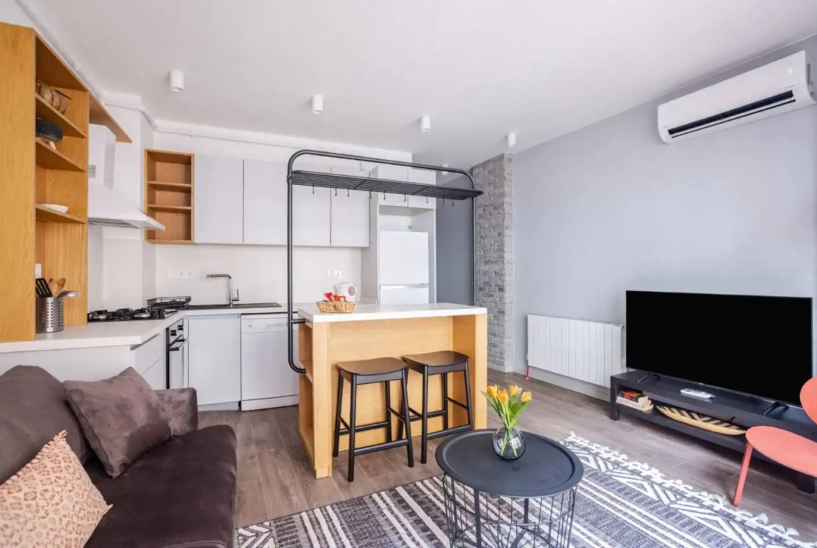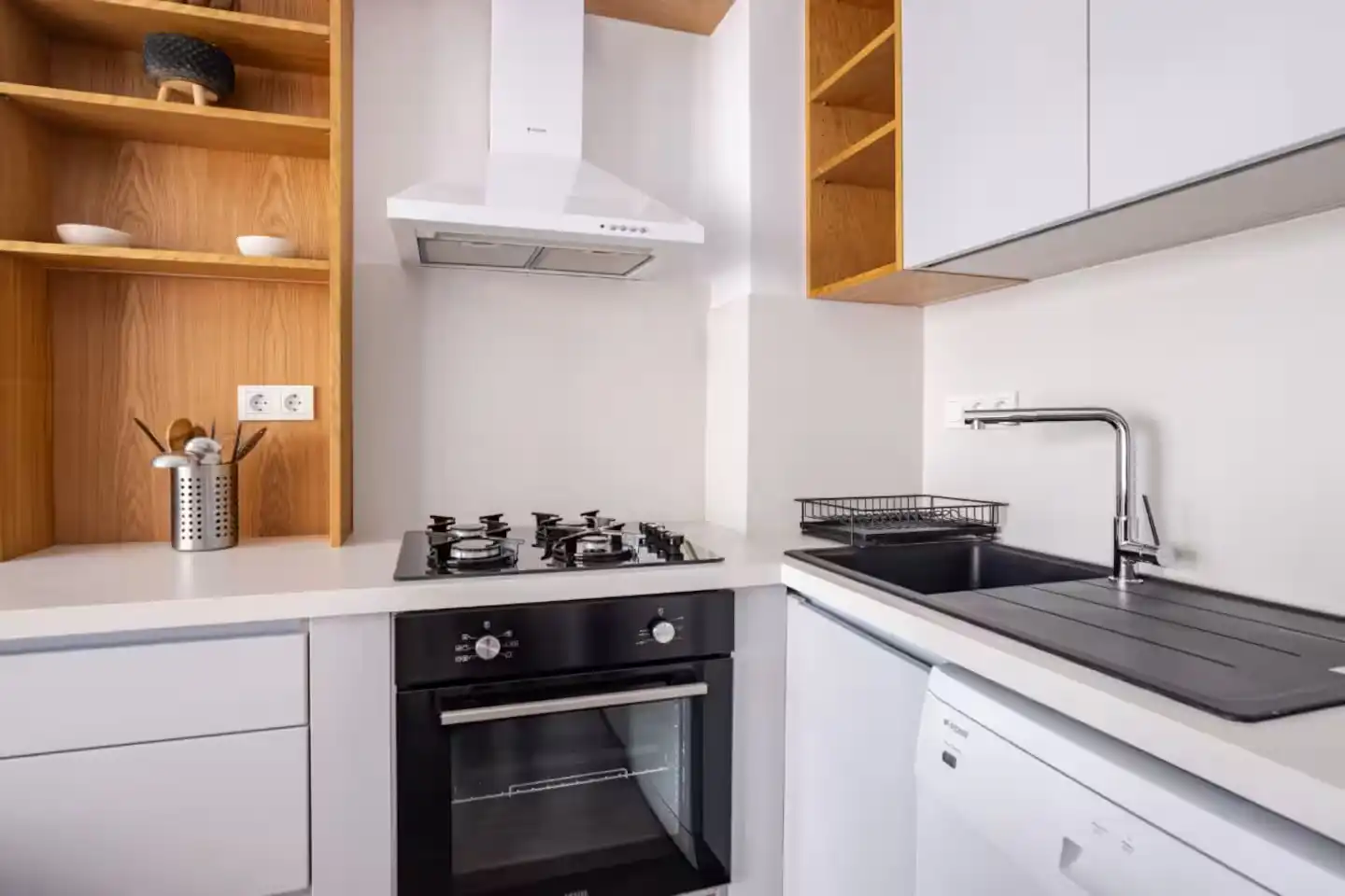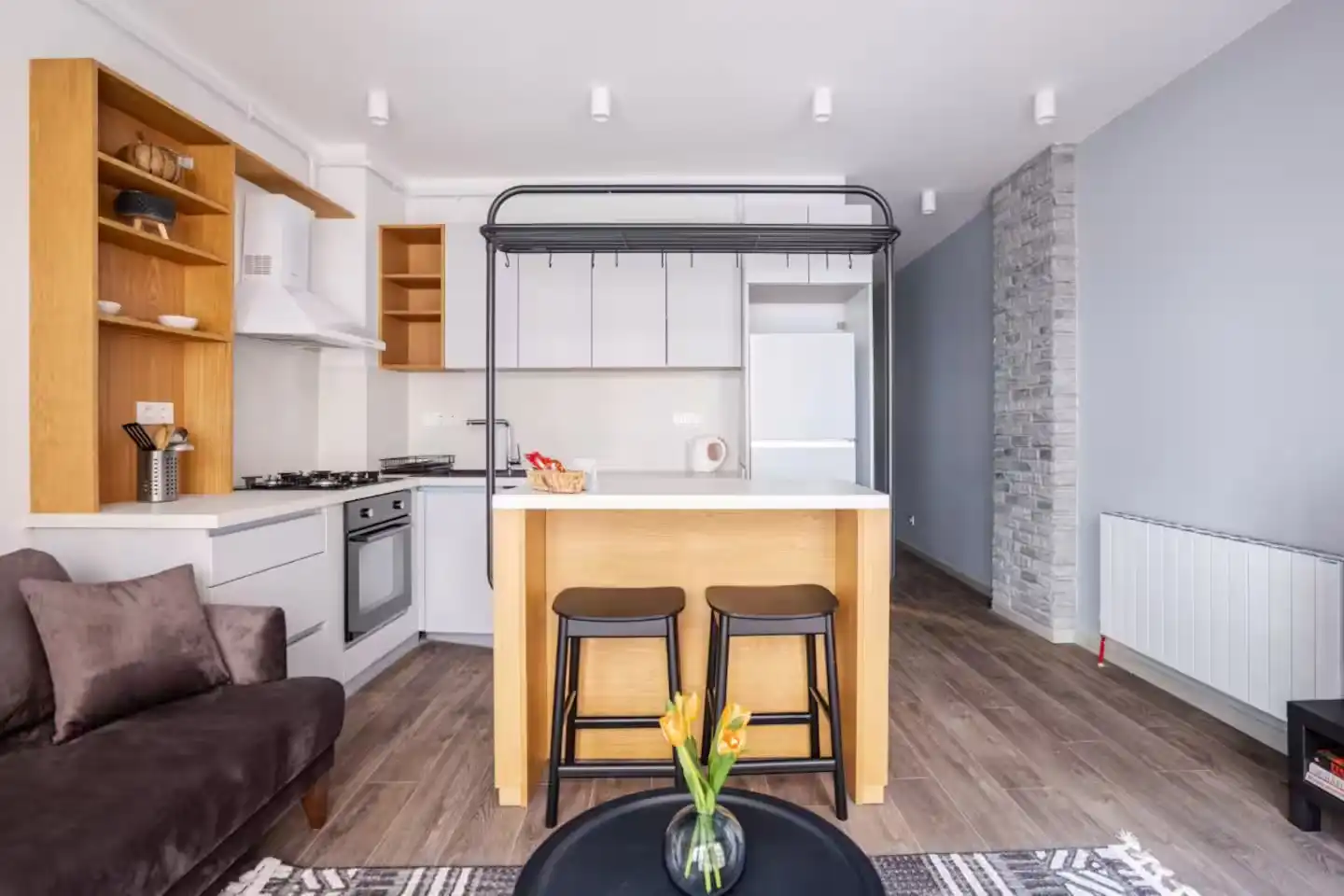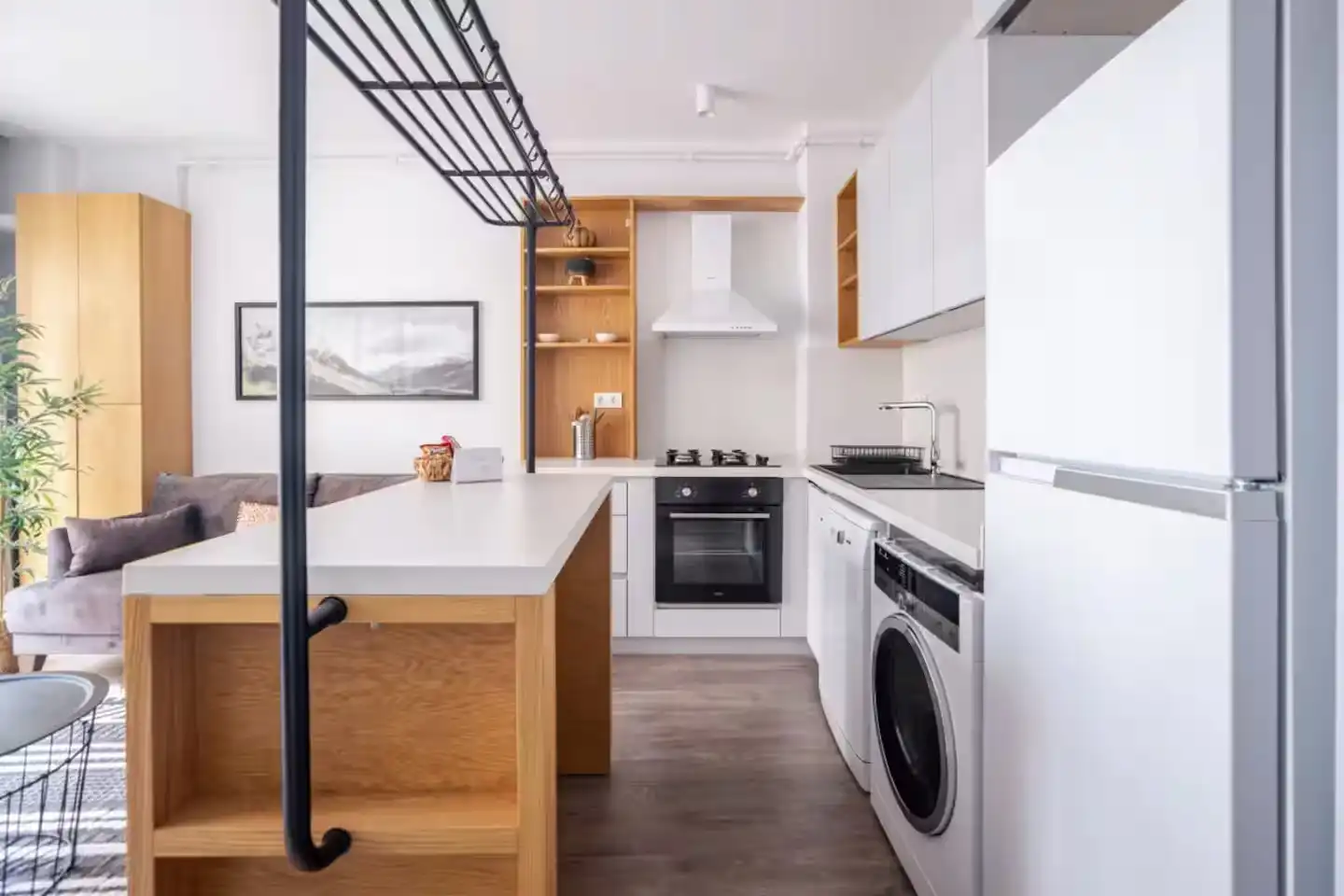 - آشپزخانه کامل و مجهز: یک آشپزخانه مدرن با تمام وسایل کاملاً نو، شامل یخچال، اجاق گاز، ماشین ظرفشویی و کتری برقی.