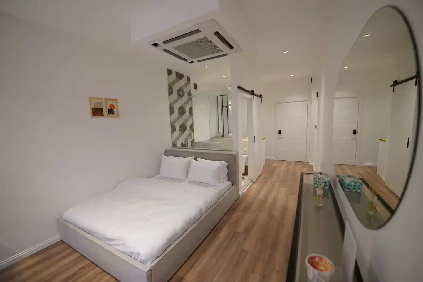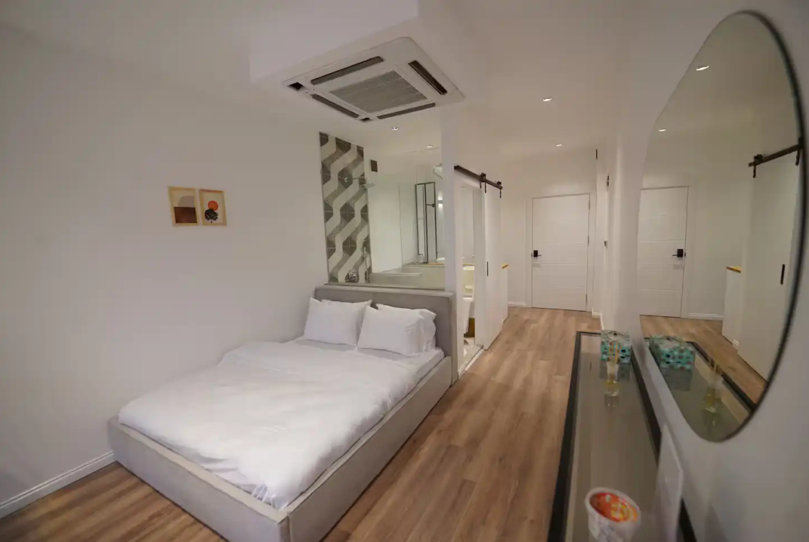 - فضای کار اختصاصی با درب مجزا: برخلاف بسیاری از آپارتمانها، اینجا یک میز کار در اتاقی مجزا با درب در اختیار شماست. این ویژگی، حریم خصوصی و تمرکز کامل را برای جلسات آنلاین و انجام امور کاری شما تضمین میکند.