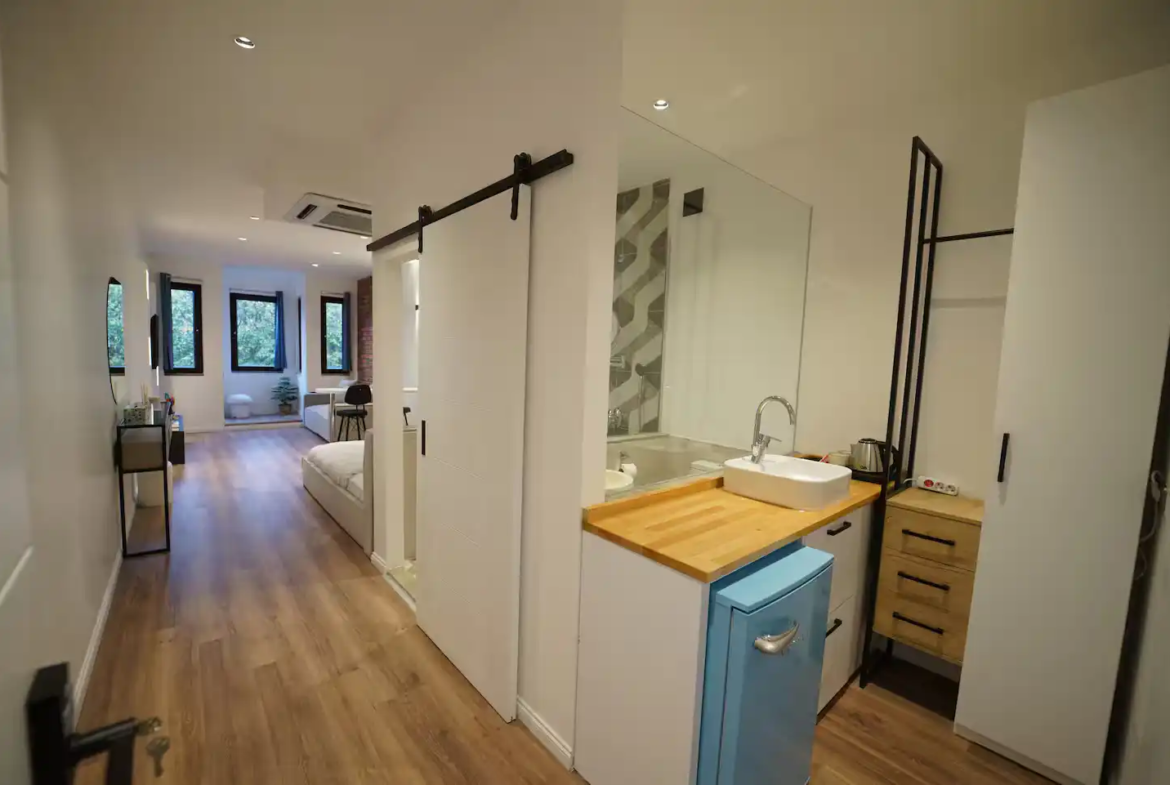 این ملک که توسط میزبان شما، ترک گشت، ارائه میشود، یک هتل آپارتمان آرام و مدرن در ساختمانی تاریخی است. طراحی داخلی مینیمال، تمیز و راحت، فضایی بیدغدغه برای استراحت شما فراهم میکند. امنیت شما در این مجموعه در اولویت قرار دارد؛ وجود دوربینهای مداربسته در ورودی ساختمان و بخش پذیرش و همچنین امکانات ایمنی کامل داخل واحد (شامل هشدار دود و کپسول آتشنشانی) خیال شما را از هر جهت راحت میکند.