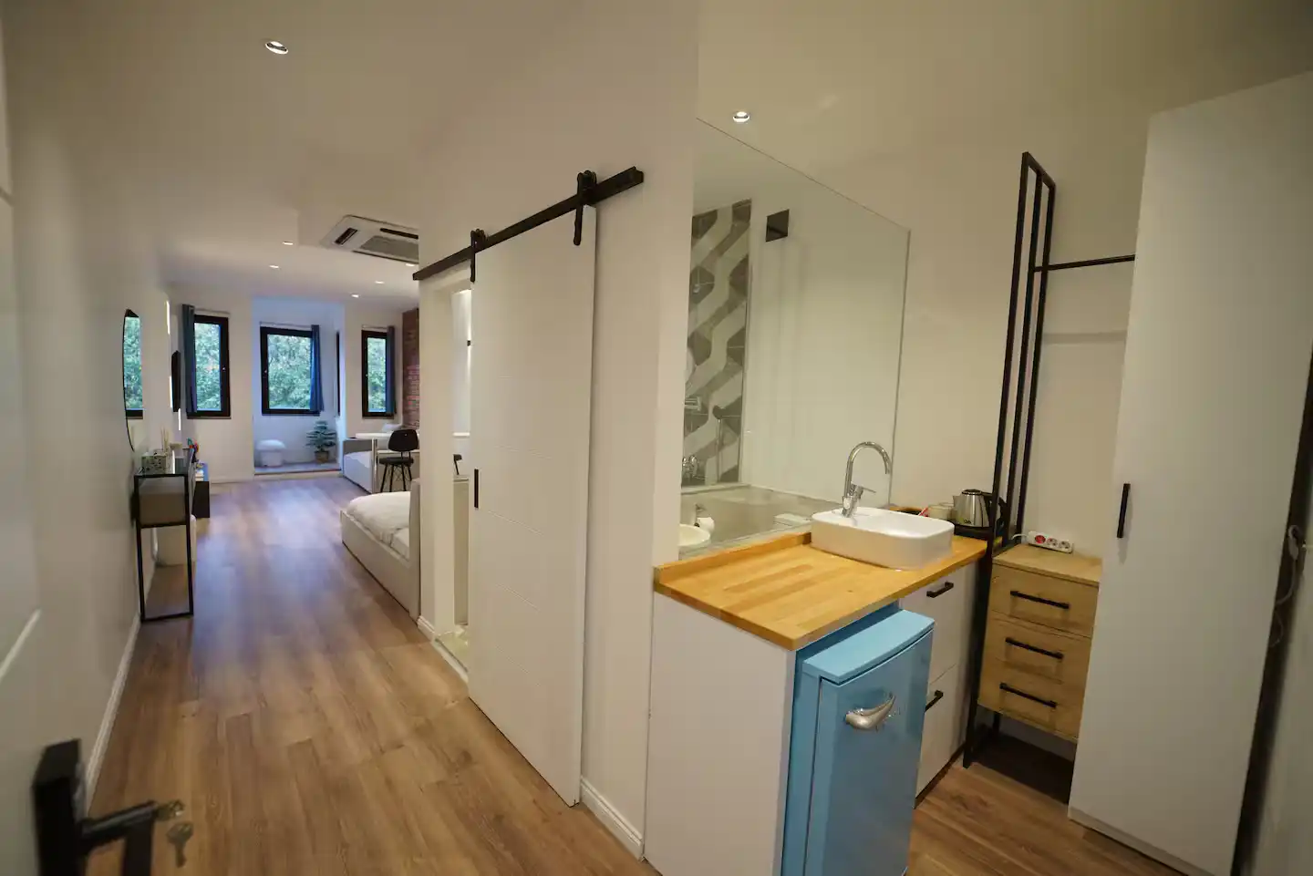 - آشپزخانه کاربردی: مجهز به یخچال، مینیفریزر، کتری برقی، لیوانهای نوشیدنی و وسایل اولیه برای آمادهسازی یک وعده غذای سبک.