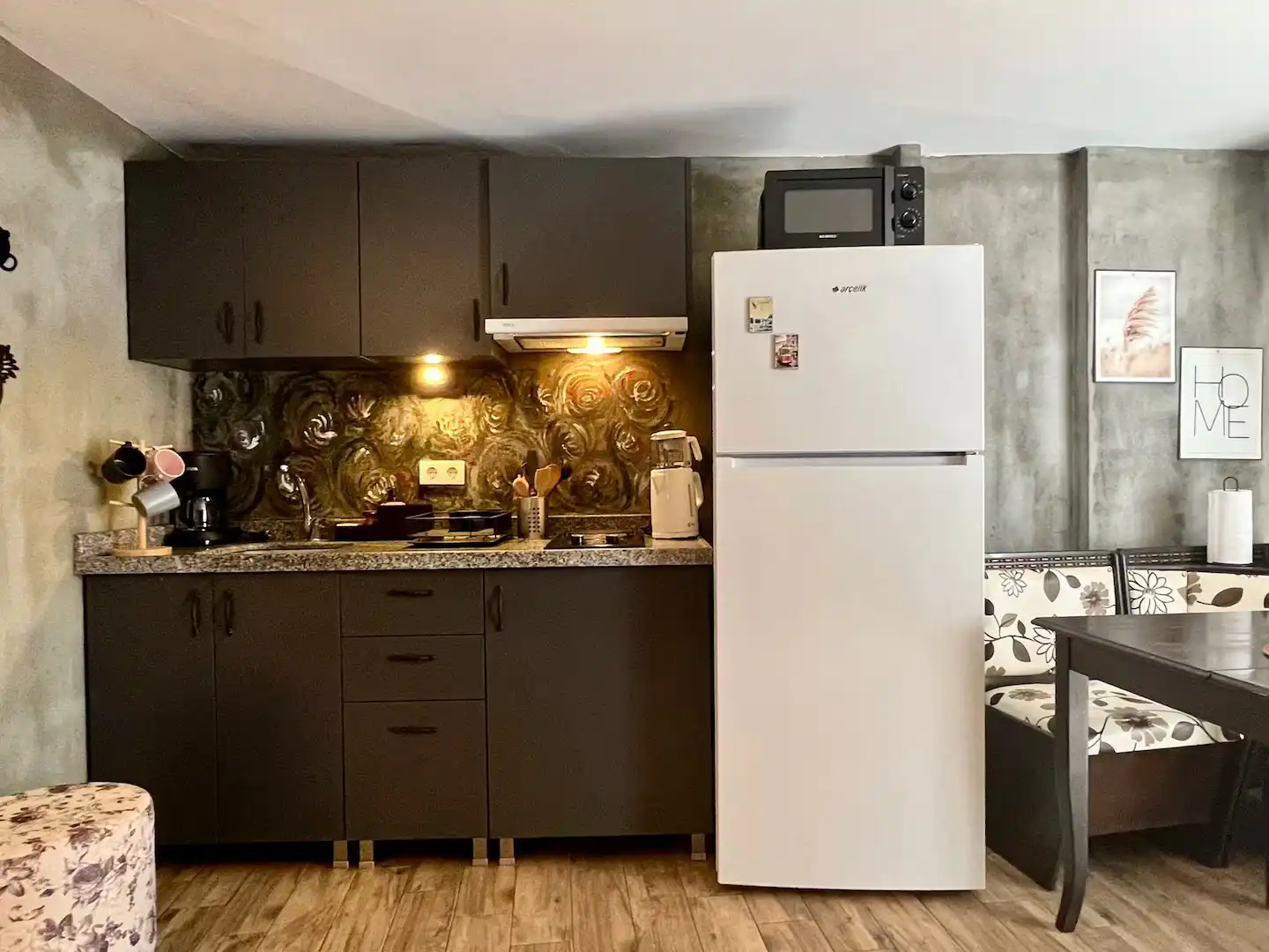 - آشپزخانه کامل: یک آشپزخانه مجهز با اجاق برقی، یخچال، مایکروویو، تستر، قهوهساز و تمام وسایل لازم برای پختوپز.
