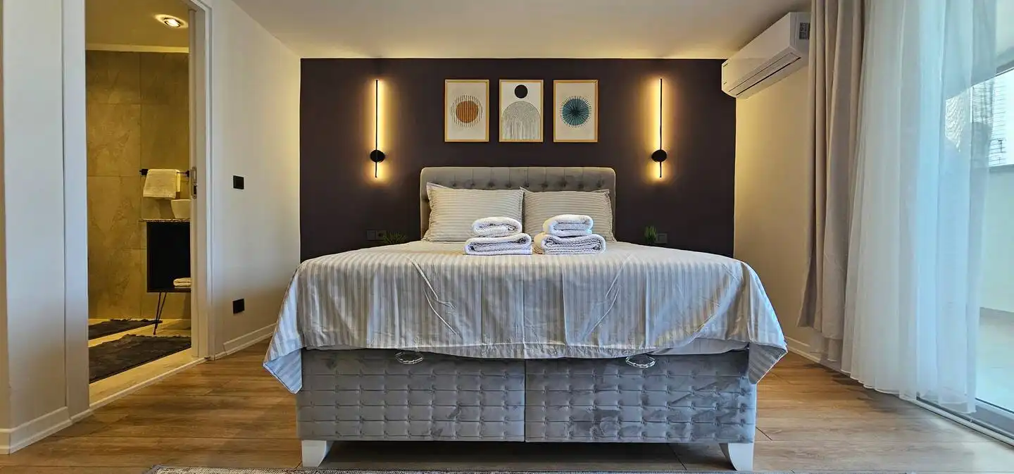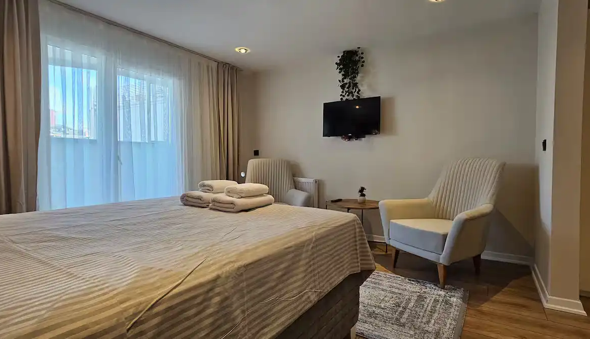 - فضای روشن و راحت: سوئیت شما طراحی مدرن و دلنشینی دارد و با پنجرههای بزرگ، از نور کافی برخوردار است. همه چیز برای یک استراحت دلنشین پس از یک روز طولانی آماده شده است.