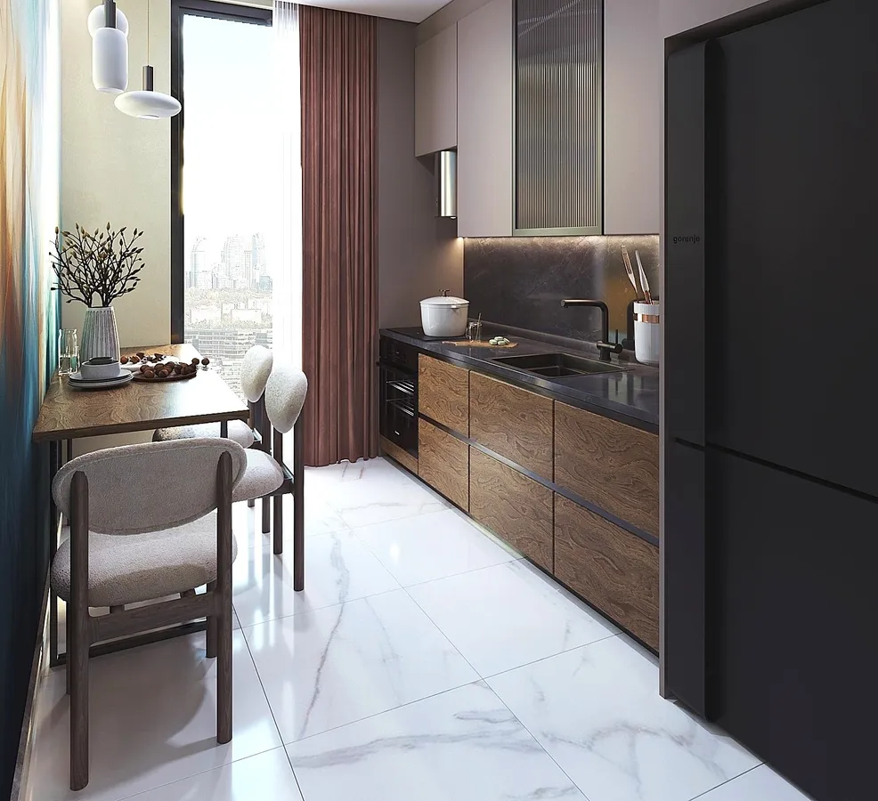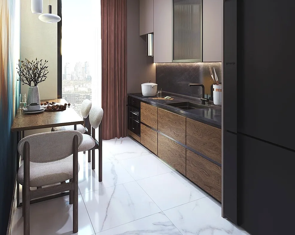 خانهها دارای یک آشپزخانه مدرن و پلان باز (Open-Plan) هستند که کاملاً با کابینتهای باکیفیت و سطوح پیشخوان وسیع مجهز شده است و با لوازم توکار شامل فر، اجاق گاز و هود تحویل داده میشود.