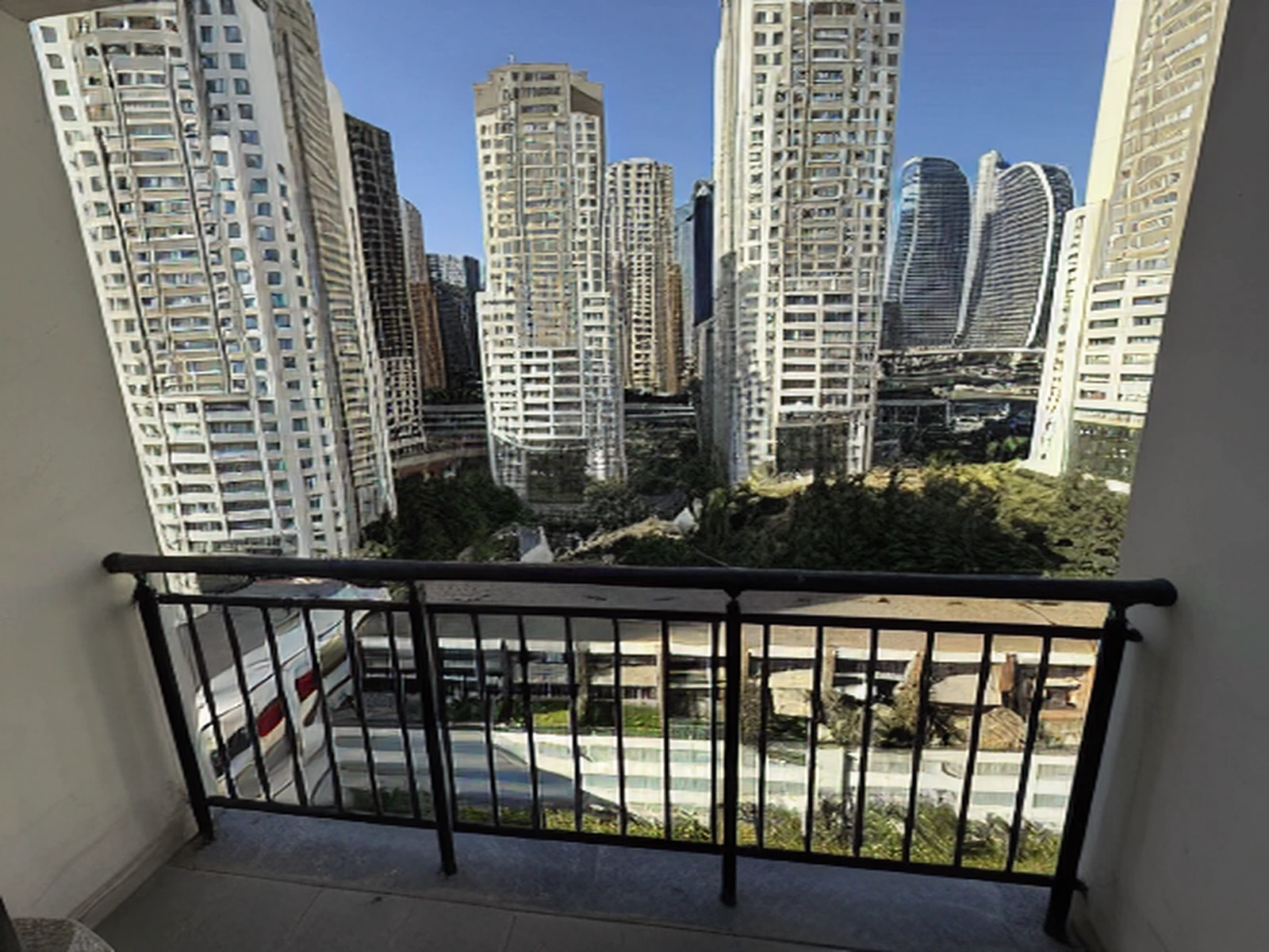 • طبقه: یازدهم (11. Kat) از ساختمان ۱۹ طبقه با چشم‌انداز باز به سمت استخر.