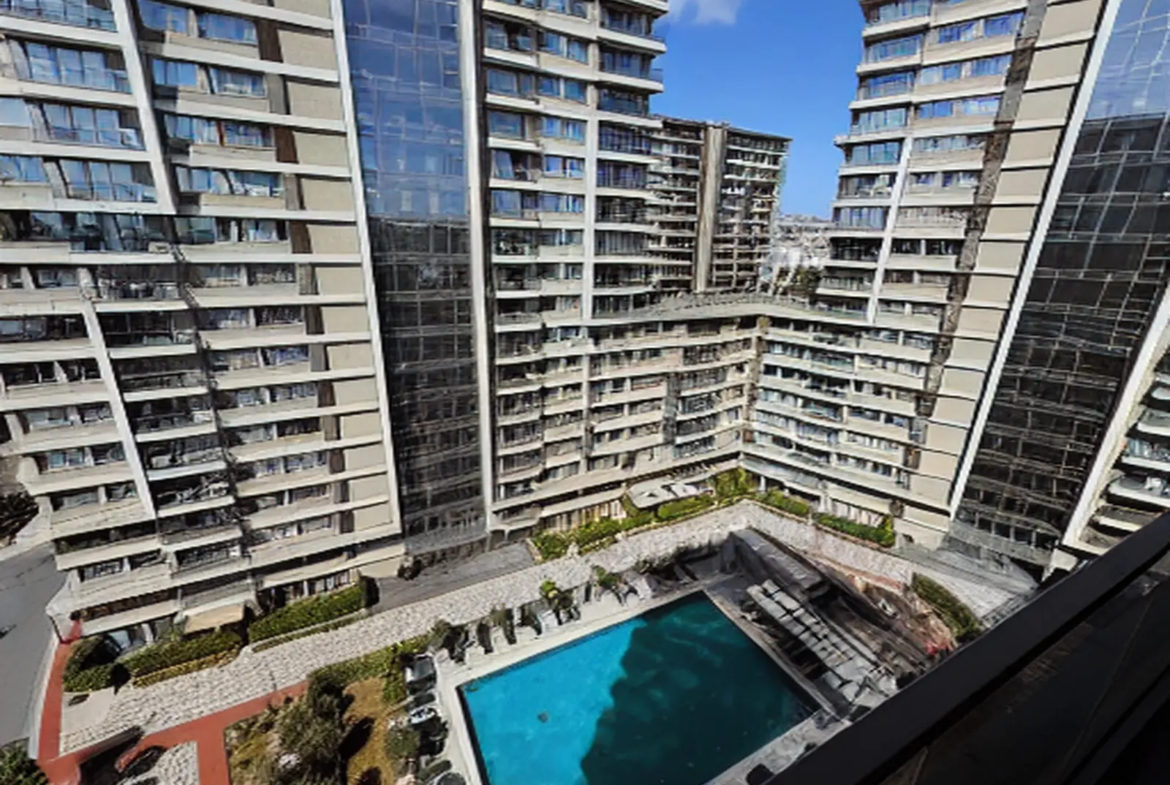 این واحد ۲ خوابه (۲+۱) در یکی از بهترین طبقات بلوک (طبقه دهم) واقع شده و دید مستقیمی به محوطه و استخر دارد: